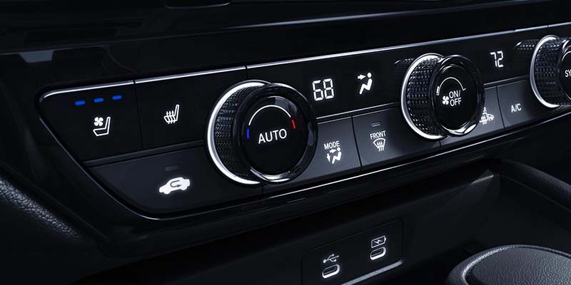Entering the 2024 Honda Accord, you're greeted by a spacious, comfortable interior spanning all models. Emphasizing driver and passenger comfort, the LX trim offers automatic climate control, while the EX and higher provide a dual-zone climate control system. Heated front seats are included in the EX, EX-L, Sport-L Hybrid, and Touring variants, ensuring a comfortable drive irrespective of the outdoor conditions. The upper three trims take comfort a notch higher with luxurious leather-trimmed seats and a driver's seat with 10-way power adjustment, including two-way lumbar support, to enhance your driving experience.